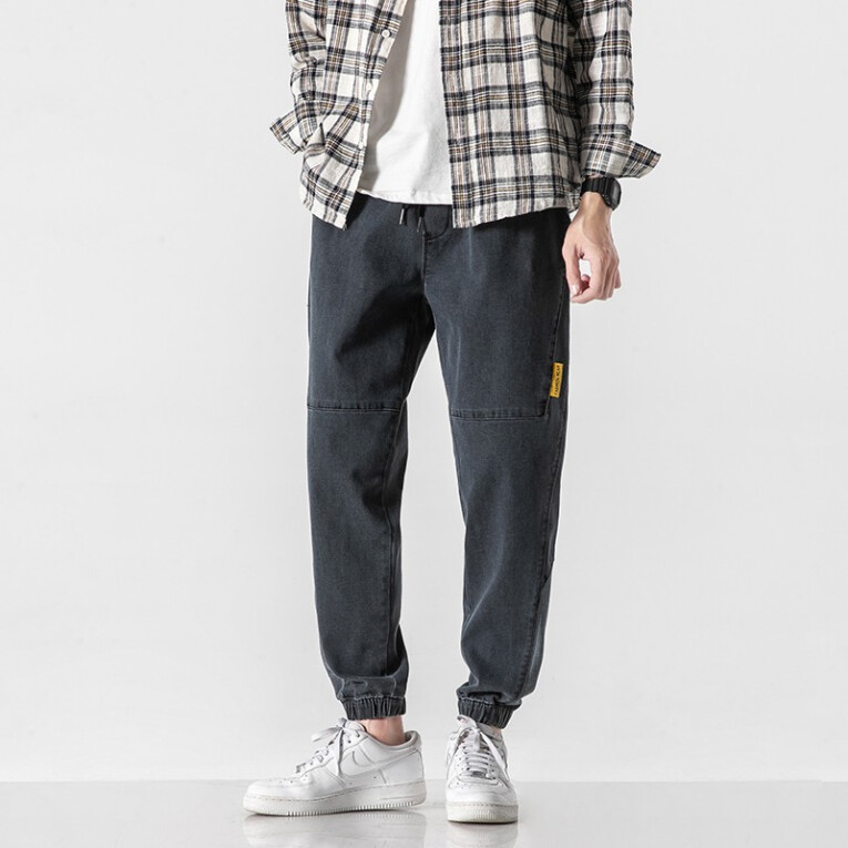 裤子男夏季新款潮牌工装裤男潮流哈伦宽松束脚青少年百搭系带运动牛仔